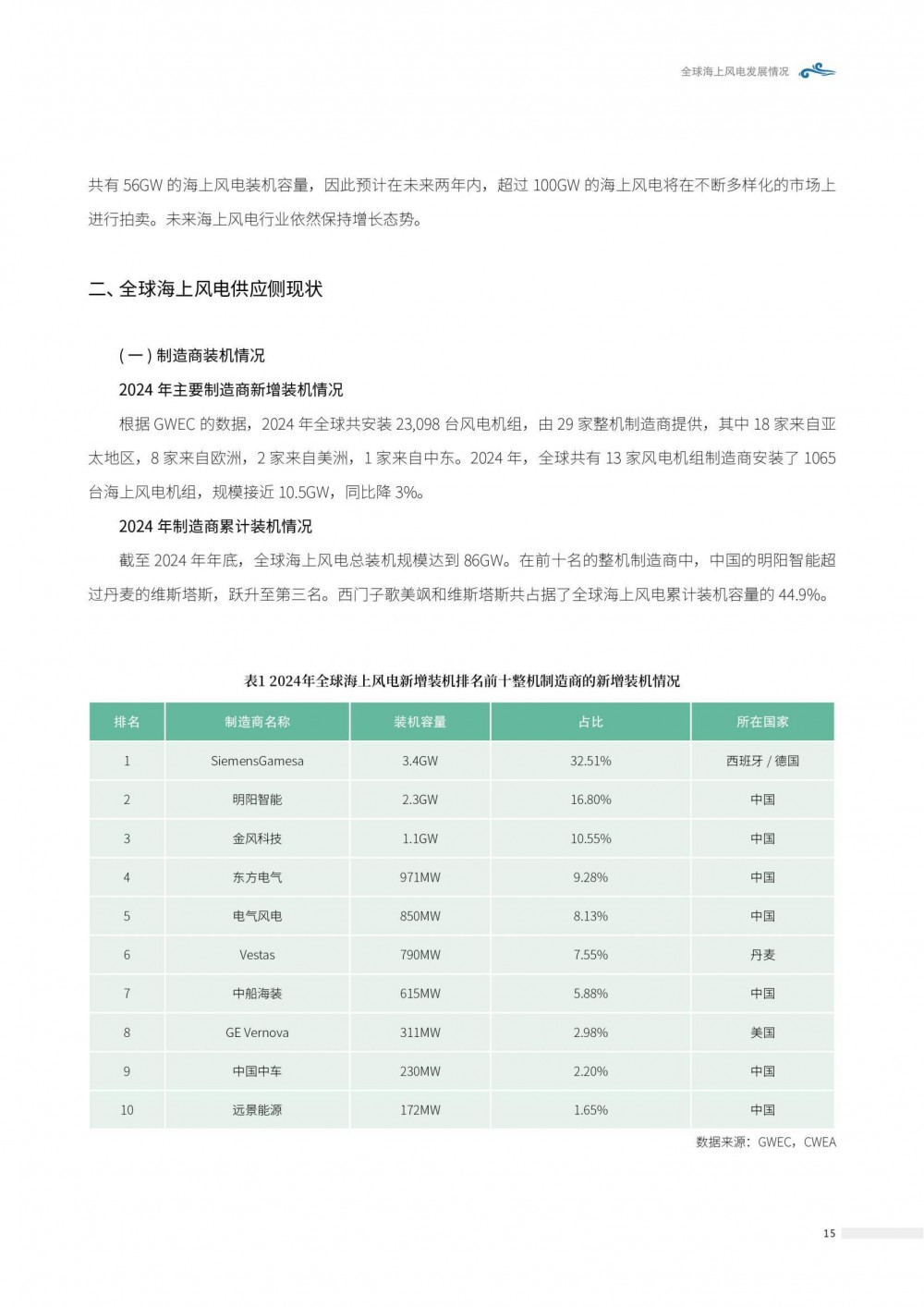 来源:中国可再生能源学会风能专业委员会(CWEA)