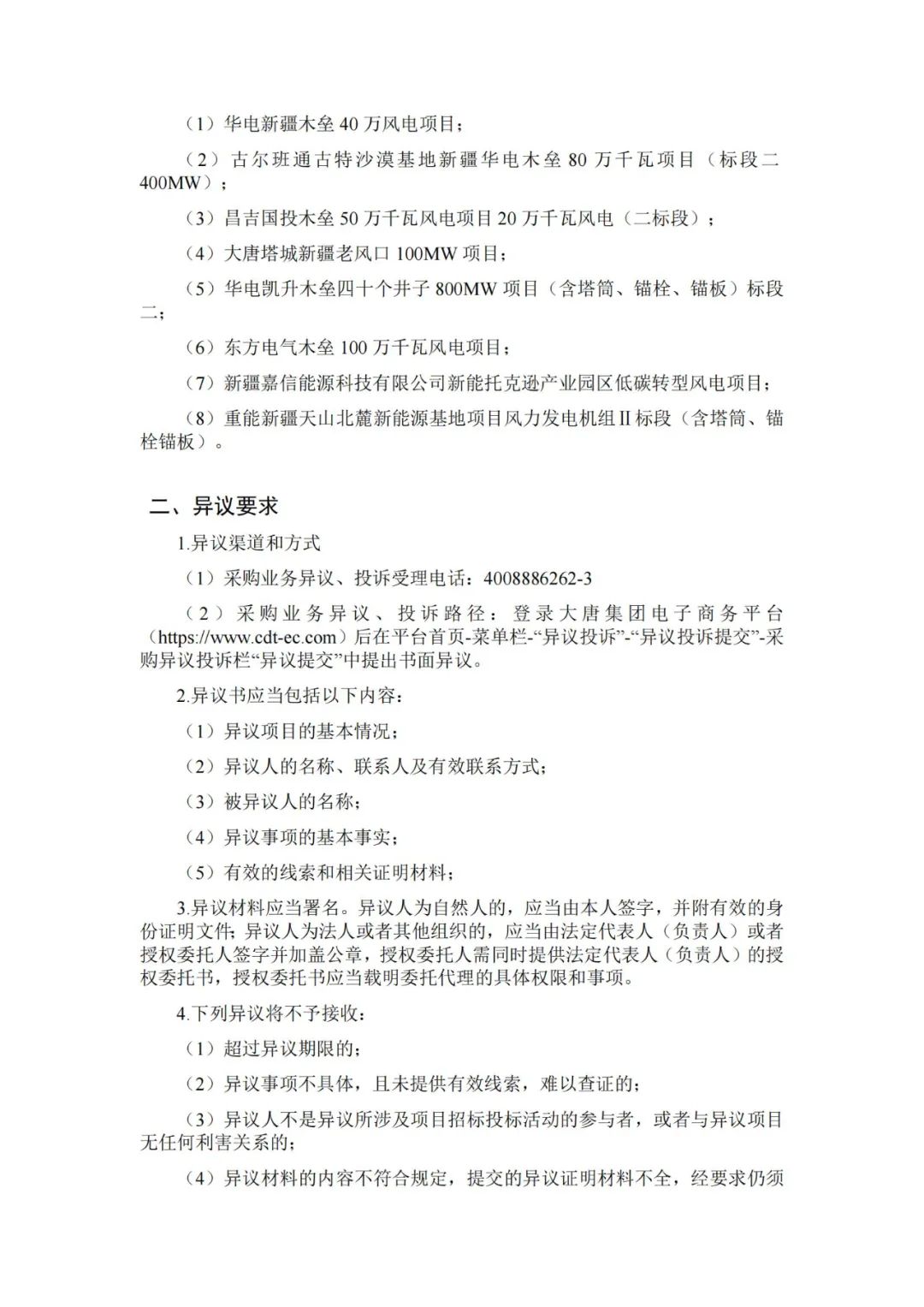 大唐贵州赫章县松林坡乡箐营50MW风电项目位于贵州省毕节市赫章县,总容量50MW,允许浮动,50MW≤总容量≤55MW,5.0MW≤单机容量≤6.7MW,200m≤叶轮直径,机型单位千瓦扫风面积不低于5.61m2/kW;115m≤轮毂高度≤130m;接受混排,最多允许2种机型混排;不允许单机降容;限定钢塔,为确保满足大件运输要求,塔架筒径≤4.6m,底法兰外径≤5m。交货日期:2025年10月开始交货。