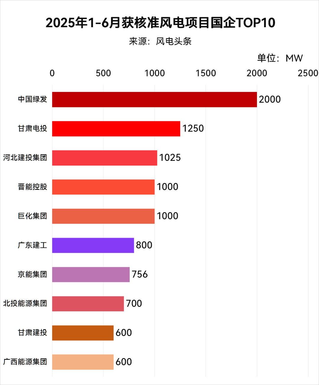 据风电头条梳理,2025年1-6月国企获核准风电项目共116个,规模合计18144.1MW(约18.14GW)。