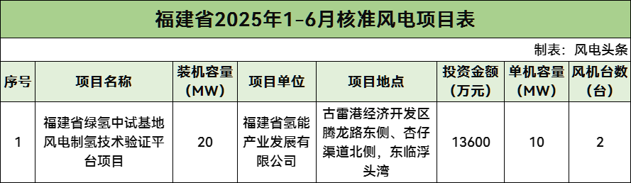 福建核准1个风电项目,总规模20MW,投资13600万元,为陆上风电项目。