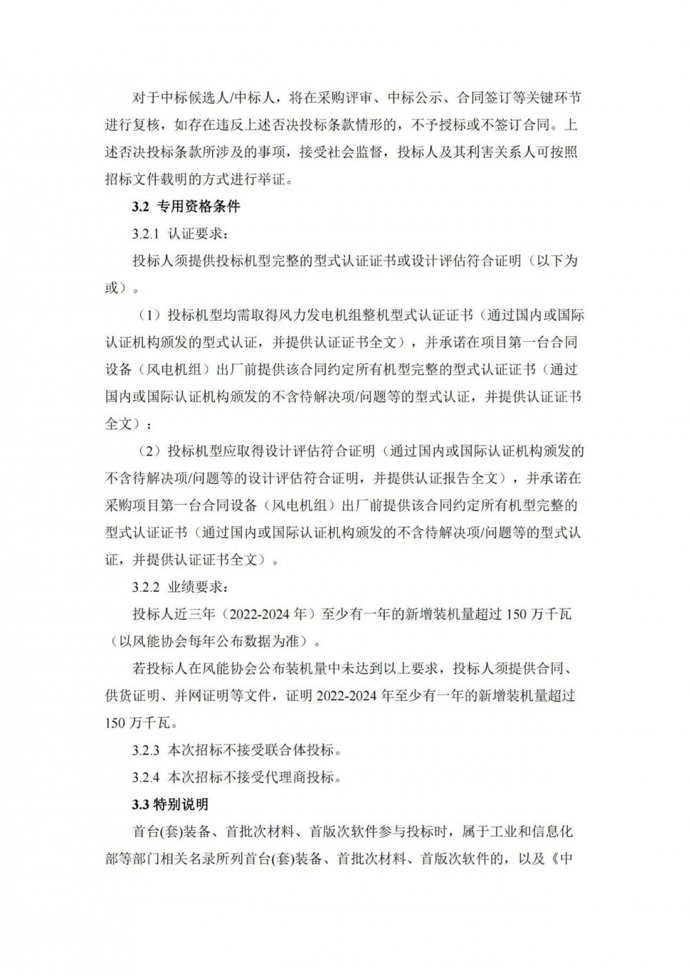 公告还指出,投标人近三年(2022-2024年)至少有一年的新增装机量超过150万千瓦(以风能协会每年公布数据为准)。