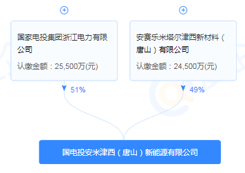 根据股权穿透显示,国电投安米津西(唐山)新能源有限公司控股股东为国家电投集团浙江电力有限公司,持有新公司51%股权。