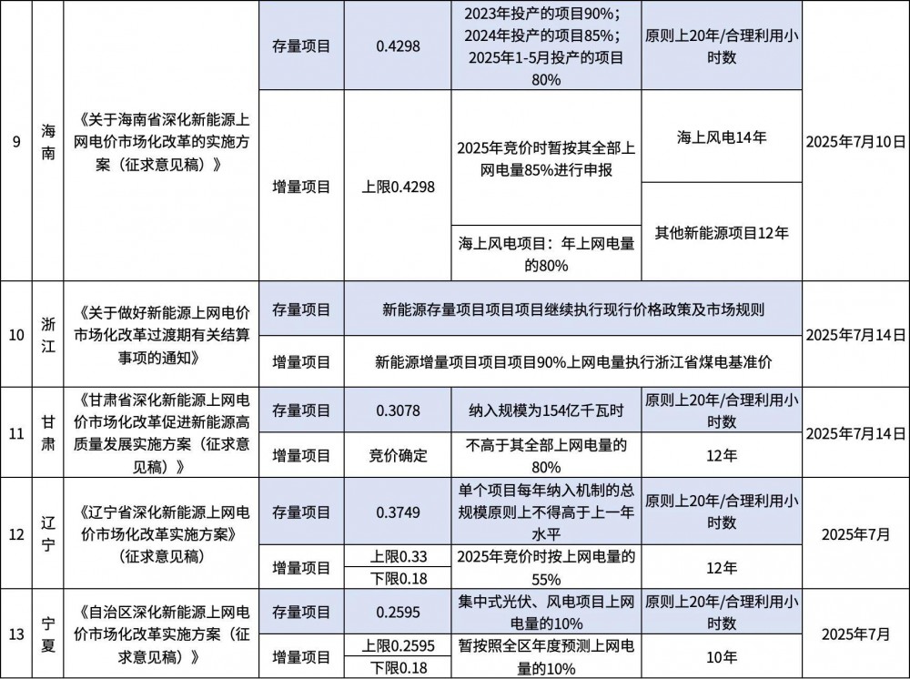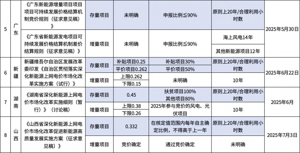 从各地出台的政策情况看,所有文件都以2025年6月1日为增量项目的起点来区分增量项目和存量项目的定价机制。