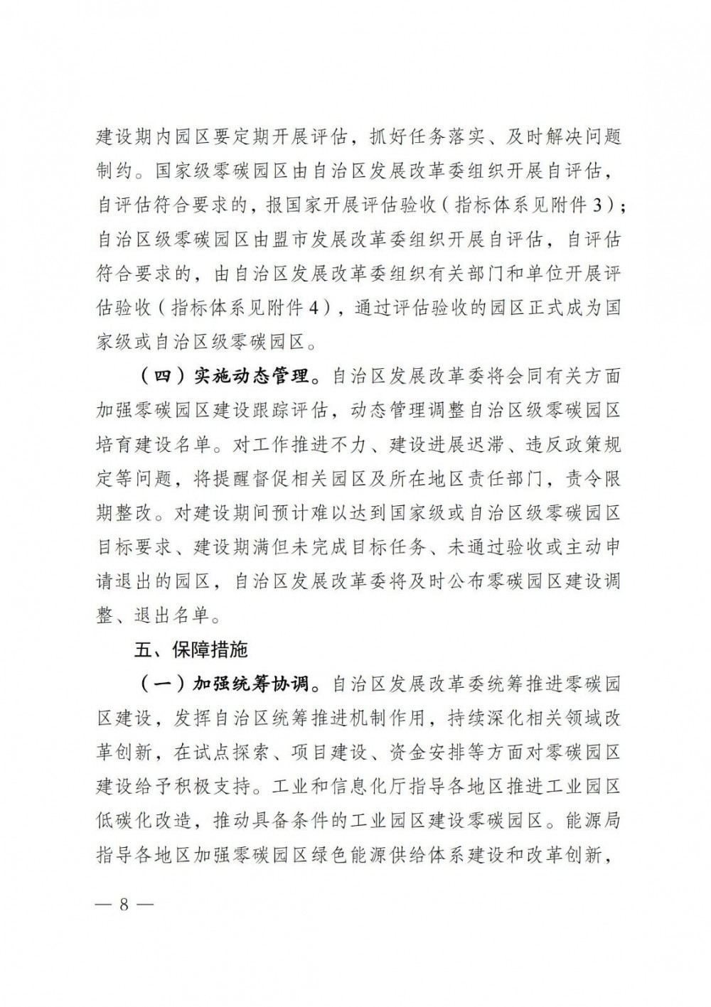 内容指出,推动项目落地。准确把握零碳园区定位,聚焦零碳园区建设目标,合理设定建设任务和政策措施,谋划一批标志性、牵引性重大项目,增强园区整体绿电消纳能力。集聚绿色产业。坚持“高标准、少而精”“宽进严出”原则,鼓励不同类型园区广泛参与,通过培育建设一批国家级和自治区级零碳园区,发挥示范引领作用。