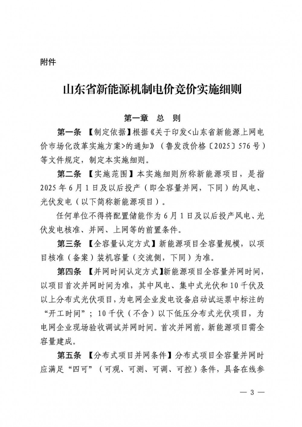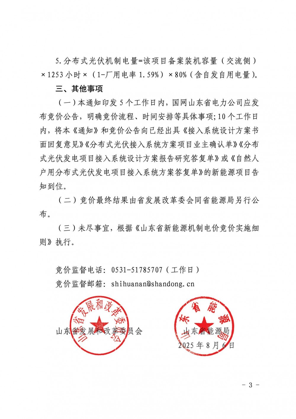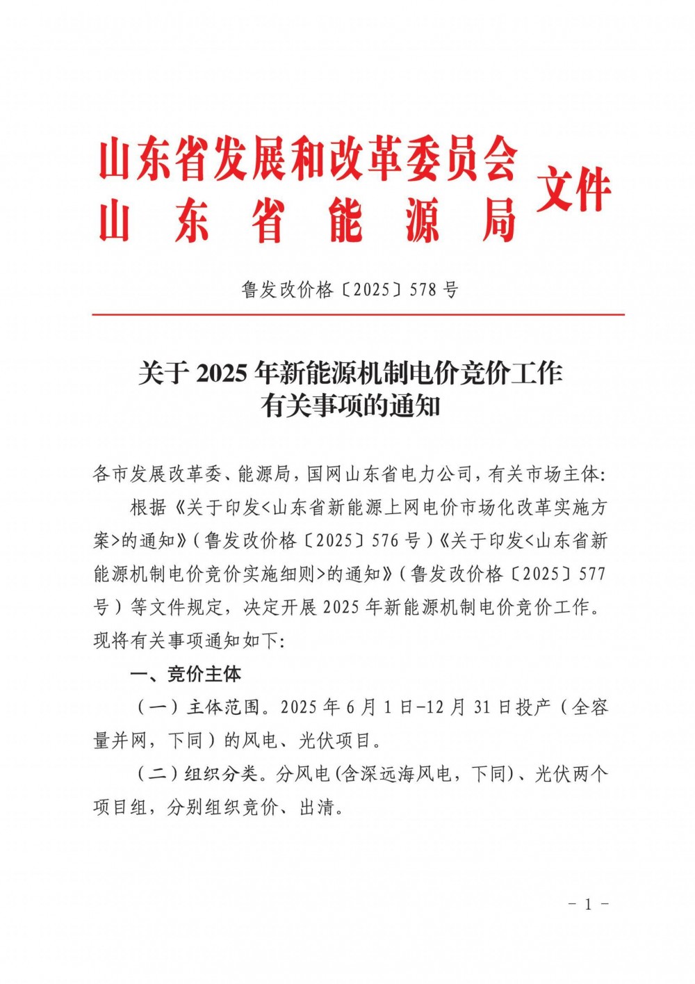 根据《山东省新能源上网电价市场化改革实施方案》(鲁发改价格〔2025〕576号)、《山东省新能源机制电价竞价实施细则》(鲁发改价格〔2025〕577号,以下简称《竞价细则》)、《关于2025年新能源机制电价竞价工作有关事项的通知》(鲁发改价格〔2025〕578号,以下简称《2025年竞价通知》)等文件规定,决定组织开展2025年新能源机制电价竞价工作。现将有关事项公告如下: