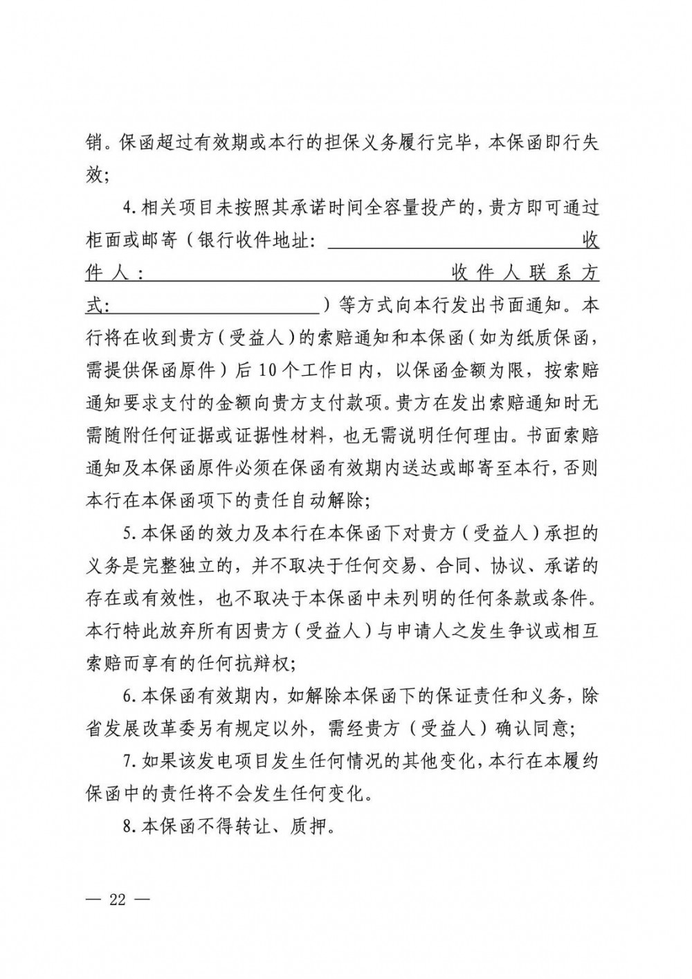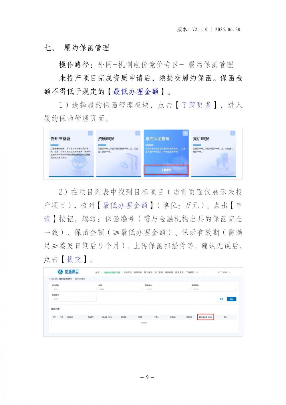 1.履约保函提交。参与竞价的未投产新能源项目(按照竞价细则第四十一条规定,未投产自然人户用分布式光伏项目,自主参与竞价的,原则上不需开具履约保函;委托代理商代理竞价的,应按要求开具履约保函),请申报主体于8月27日-8月28日通过竞价申报平台完成履约保函提交。本次竞价可开具电子保函或纸质保函。考虑保函开具、提交的便利性,建议优先开具电子保函。如开具纸质保函,除在竞价平台提交履约保函外,还须将原件于8月27日-8月28日现场交至竞价工作组(山东省临沂市兰山区陶然路163号评标基地103会务室,联系电话:0539-5272550,工作时间:8:30-12:00、14:00-17:30,下同)。期间提交后无法撤回修改,未按期完成的,视为放弃竞价资格。履约保函应严格按照模板开具(模板详见《竞价细则》),保函金额计算公式及相关参数详见附件5。