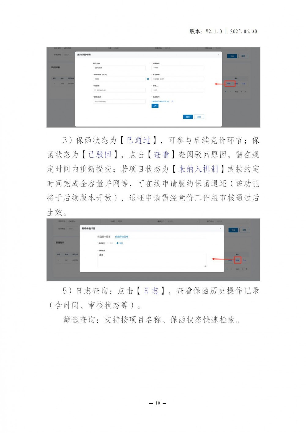 2.履约保函审核、回退修改。9月1日完成履约保函初审,未通过初审的项目,集中退回修改,9月2日-9月3日完成修改上报。如需修改纸质保函,请申报主体携带签字盖章后的保函退回申请(模板详见附件6),现场取回保函原件,并于9月2日-9月3日工作时间内现场重新提交。逾期未重新提交,视为放弃竞价资格;重新提交后仍未通过审核的,取消竞价资格。请及时关注竞价申报平台的审核状态。
