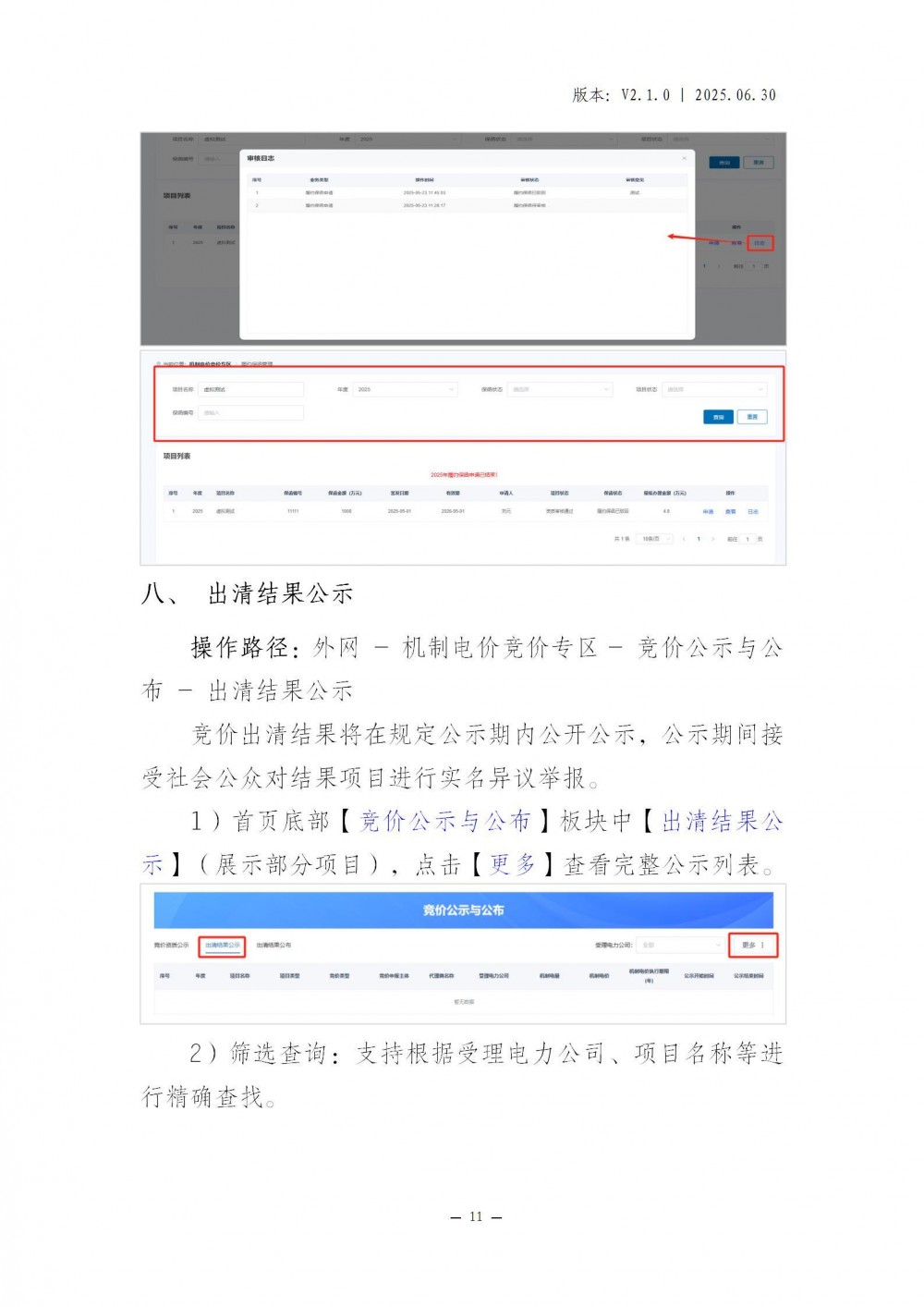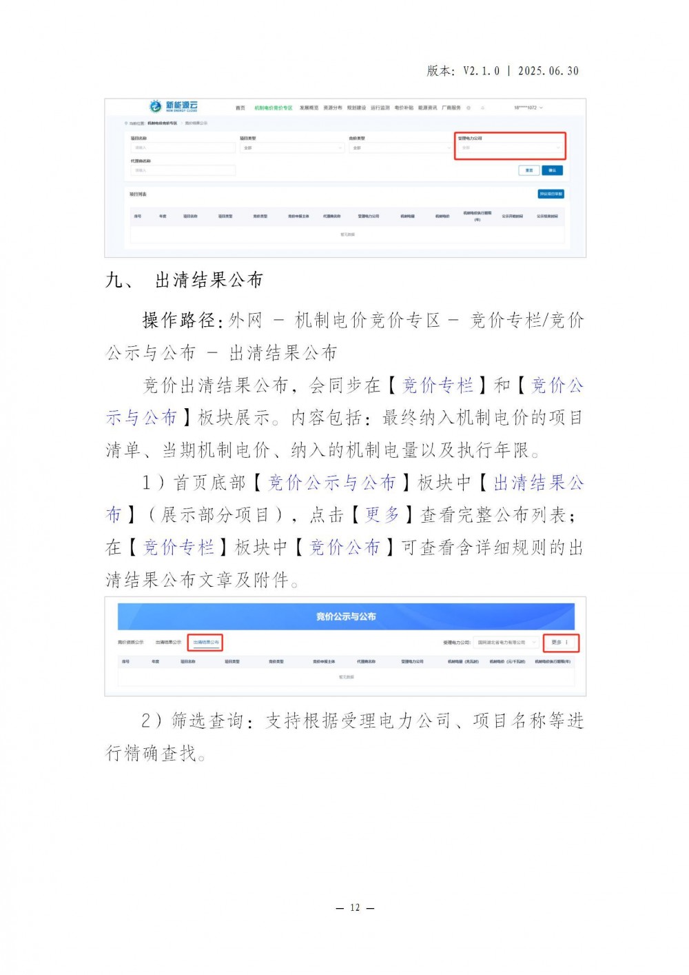 价格出清结束后,在“新能源云”网站、“95598智能互动”网站对出清的项目名称、项目类型、机制电量比例、机制电价标准等信息进行公示,公示期3个工作日。