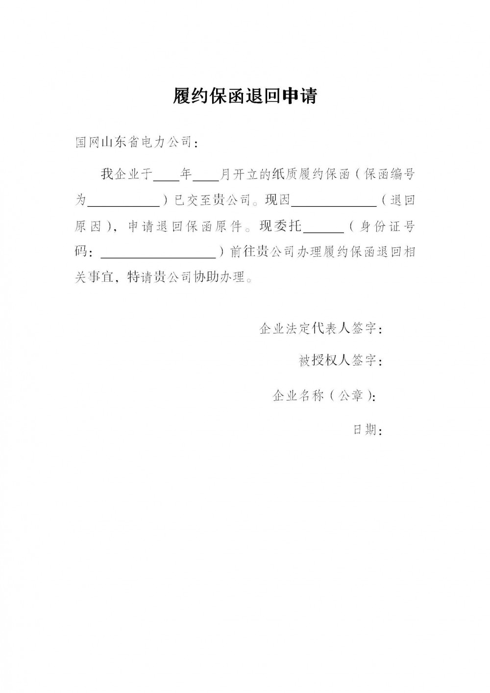 竞价结束后,符合《竞价细则》第四十五条规定的保函退还条件的,竞价申报主体可携带签字盖章后的履约保函退回申请(模板详见附件6),向国网山东省电力公司申请退还保函。