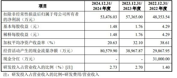 从数据来看,2024年公司营业收入和扣非归母净利润双双出现下滑,其中营业收入同比下滑16.36%,扣非归母净利润同比下滑6.78%。