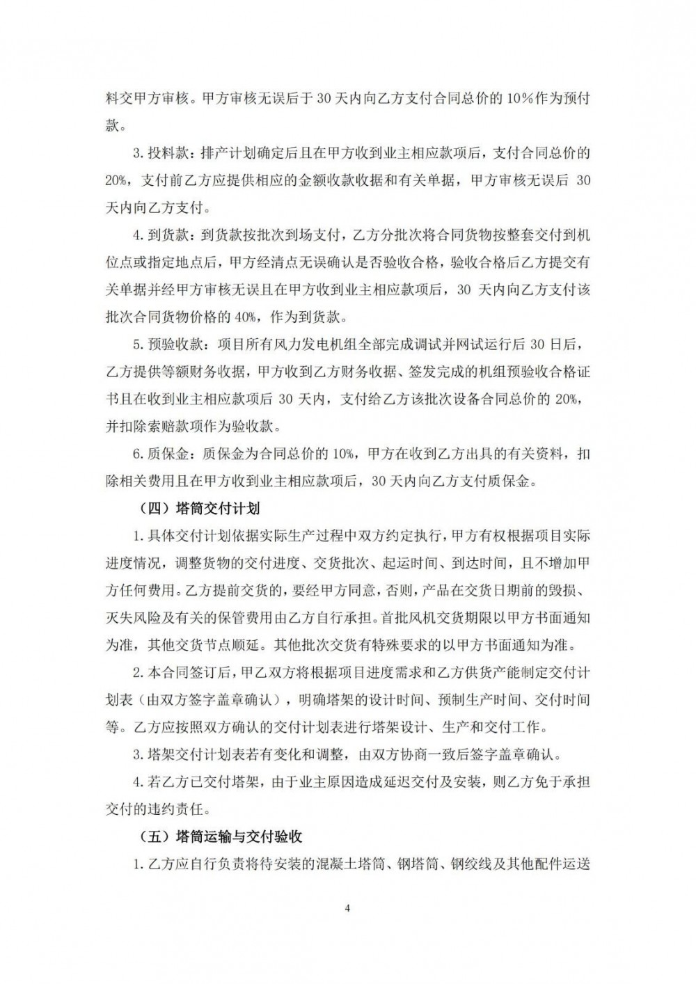 合同标的物为17套 7.5MW-233-160 型号钢-混凝土塔筒及附件,每套价格为365万元(含税),合同总金额为6,205万元(含税)。