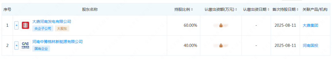 股权穿透图显示,该企业由大唐河南发电有限公司和河南中豫格林新能源有限公司共同持股。其中,大唐河南发电有限公司持股60%。