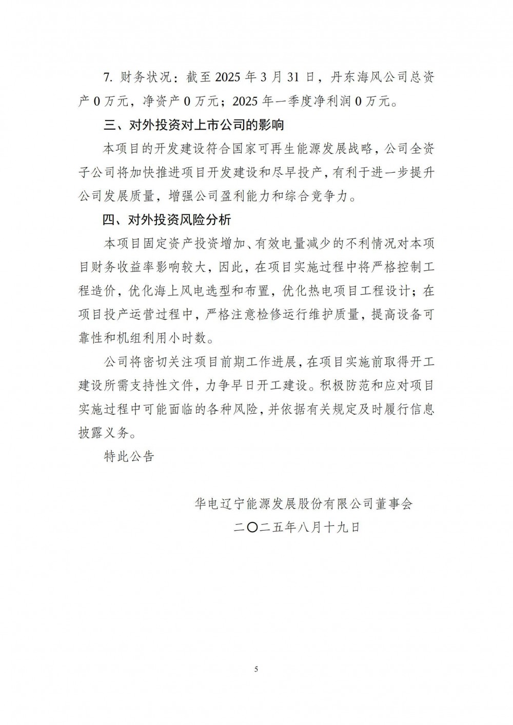 8月19日,华电辽宁能源发展股份有限公司发布关于增资建设一体化联营项目的公告。