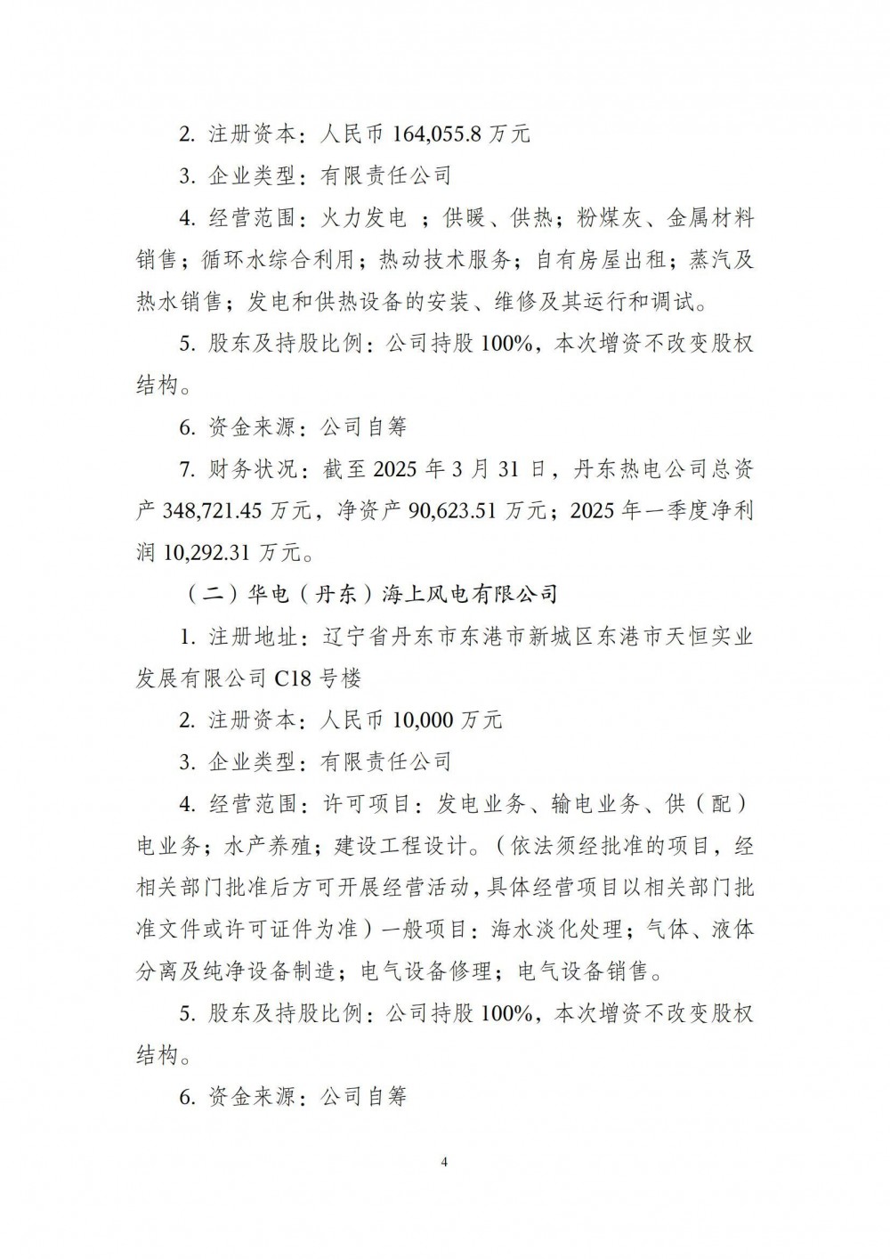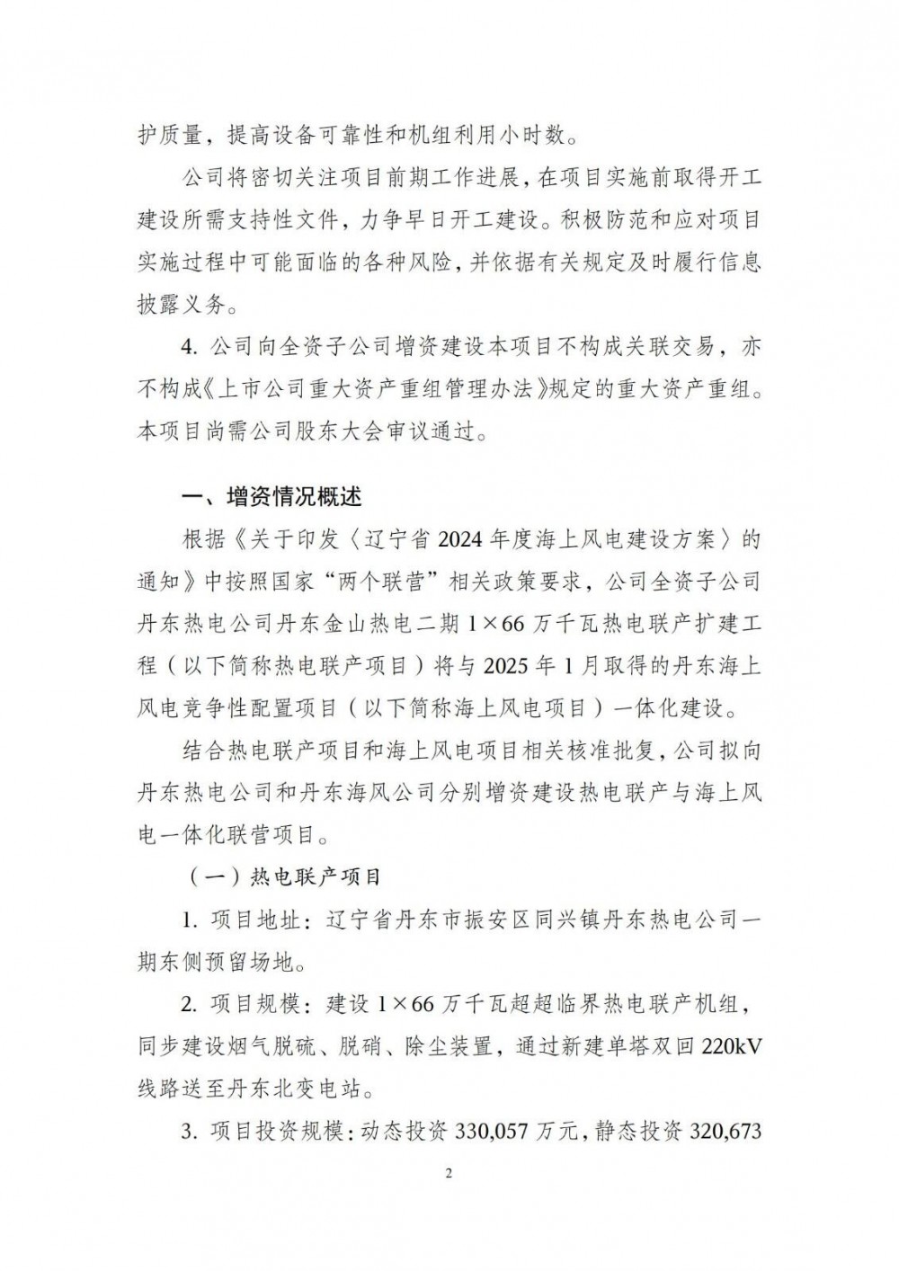 公告显示,华电辽宁能源发展股份有限公司拟向全资子公司丹东金山热电有限公司(简称丹东热电公司)和华电(丹东)海上风电有限公司(简称丹东海风公司)增资建设热电联产与海上风电一体化联营项目。