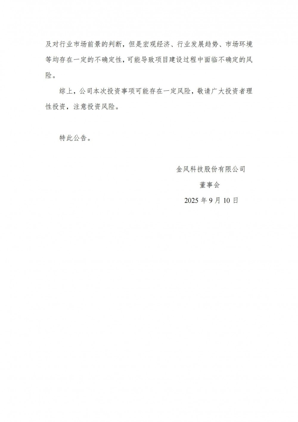 9月11日,金风科技股份有限公司发布关于签署投资开发协议并开展申报工作的公告。