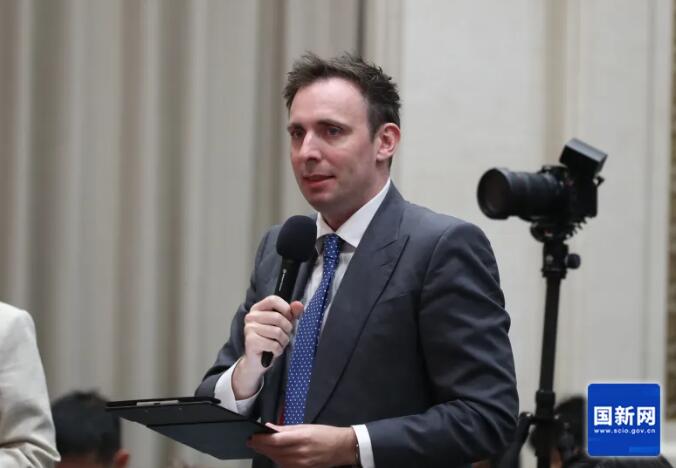 美国国际市场新闻社记者提问(刘健 摄)