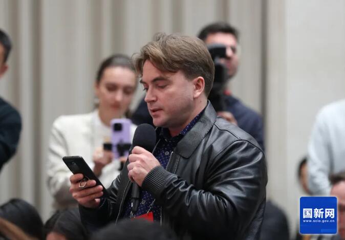 俄通塔斯社记者提问(刘健 摄)