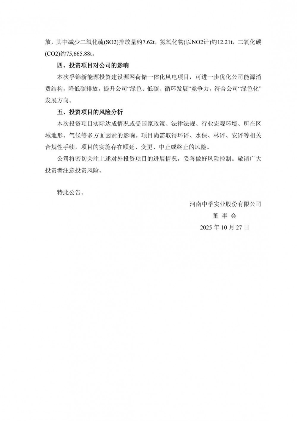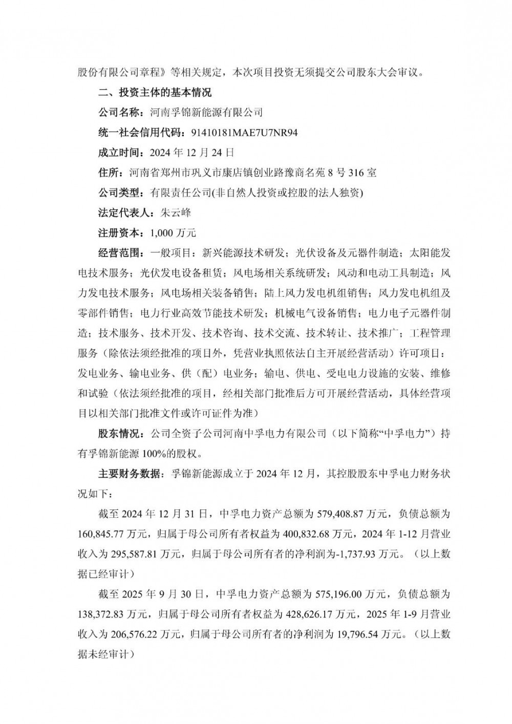 10月28日,河南中孚实业股份有限公司发布关于全资二级子公司投资建设源网荷储一体化风电项目的公告。