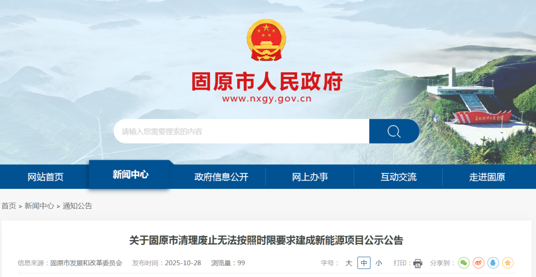 能源圈获悉,10月28日,固原市发展和改革委员会发布关于固原市清理废止无法按照时限要求建成新能源项目公示公告。