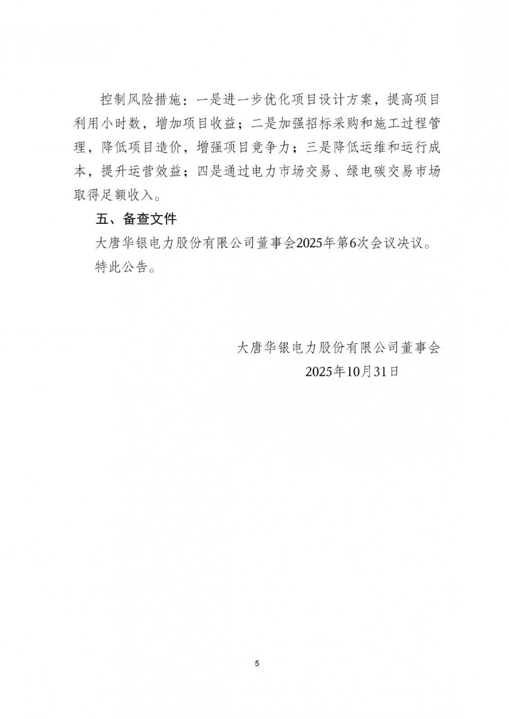 10月31日,大唐华银电力股份有限公司发布关于投资开发新能源发电项目的公告。