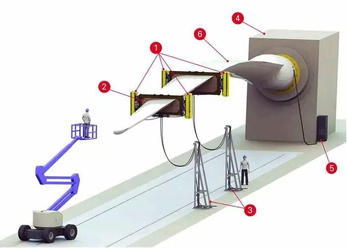 加载点距根部70%处,逐级施加1.6倍极限弯矩(≈200吨拉力);