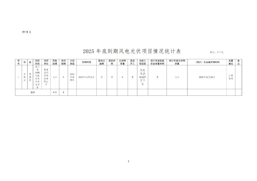 1.2025年底到期风电光伏项目拟调整情况统计表