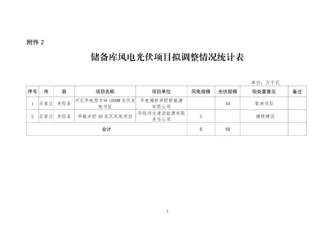 为进一步加强风电、光伏发电项目管理,我局组织对井陉县2025年底到期未建成风电光伏项目和储备库风电光伏项目情况进行了摸底,并结合企业投资积极性、土地资源落实情况、项目前期手续办理及施工进度等研究提出了处置意见。现将相关项目拟调整意见予以公示。具体项目名单及调整意见见附件。公示时间为2025年11月15日至11月17日。期间,如有异议,请向井陉县发展和改革局反映。