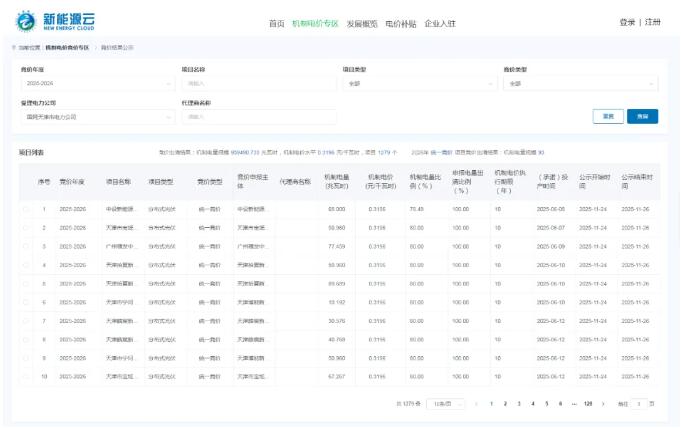 能源圈获悉,11月24日,国网新能源云公示天津市2025~2026年机制电价竞价结果。