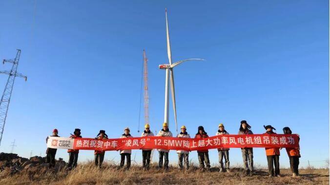 11月21日,超大功率陆上沙戈荒风电机组——中国中车“凌风号”在张北试验机位成功吊装,开启了中国中车沙戈荒风电新征程。