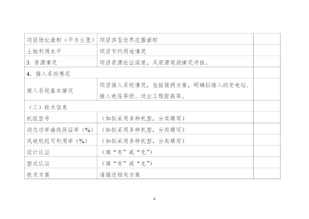3.申报企业应按要求编制项目建设方案,明确站点风能资源条件、电站建设方案、经济性测算分析、技术先进性等内容;并附项目接网方案,明确拟接入的变电站、接入电压等级、送出工程距离等。鼓励申报项目建设系统友好型电站,创新采用提高并网友好性能,提升涉网主动支撑能力,增强频率、电压耐受能力和支撑调节能力,能够平抑新能源发电出力且技术先进、安全可靠的先进设备。