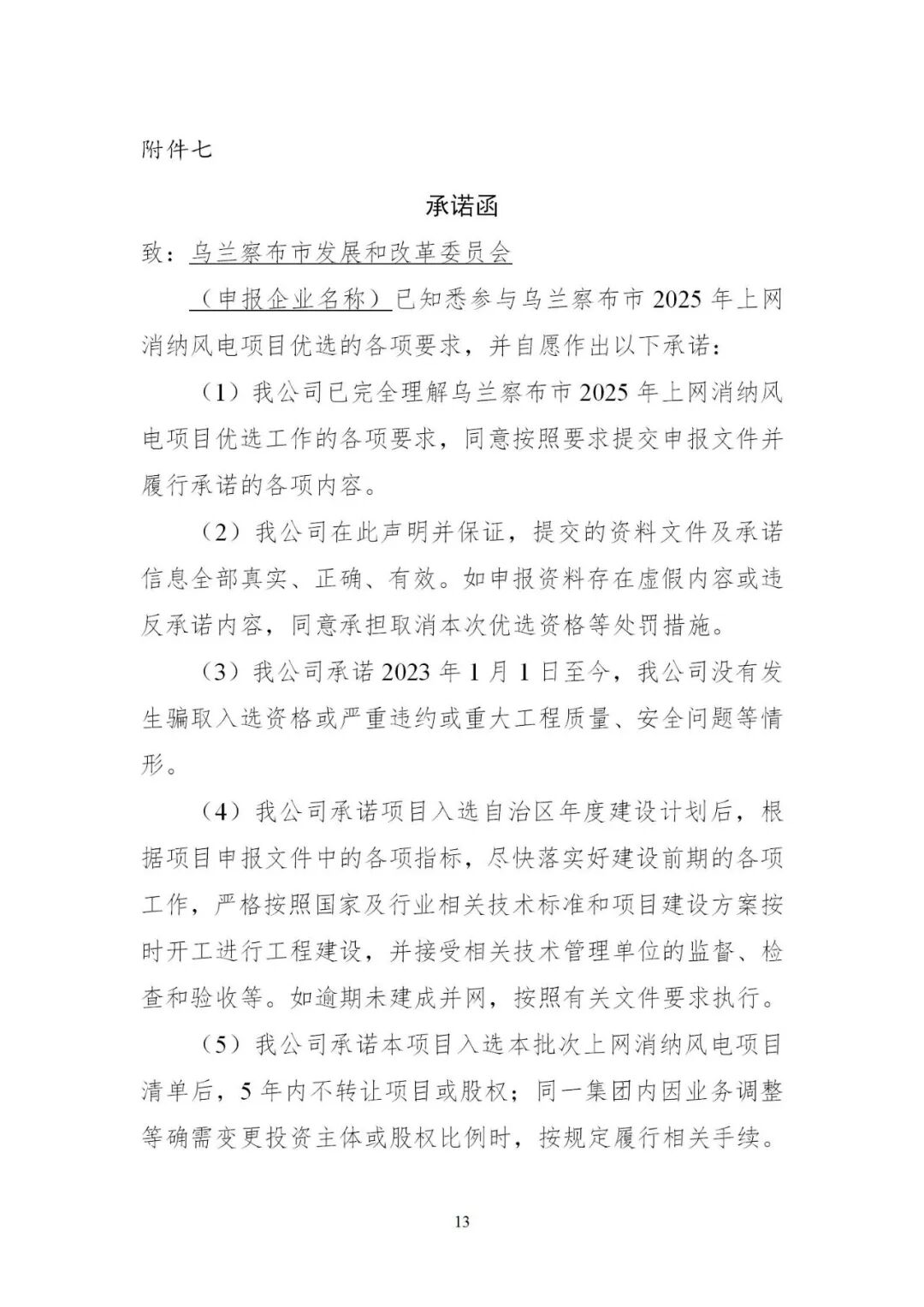 ?关于开展乌兰察布市2025年上网消纳风电项目优选工作的公告