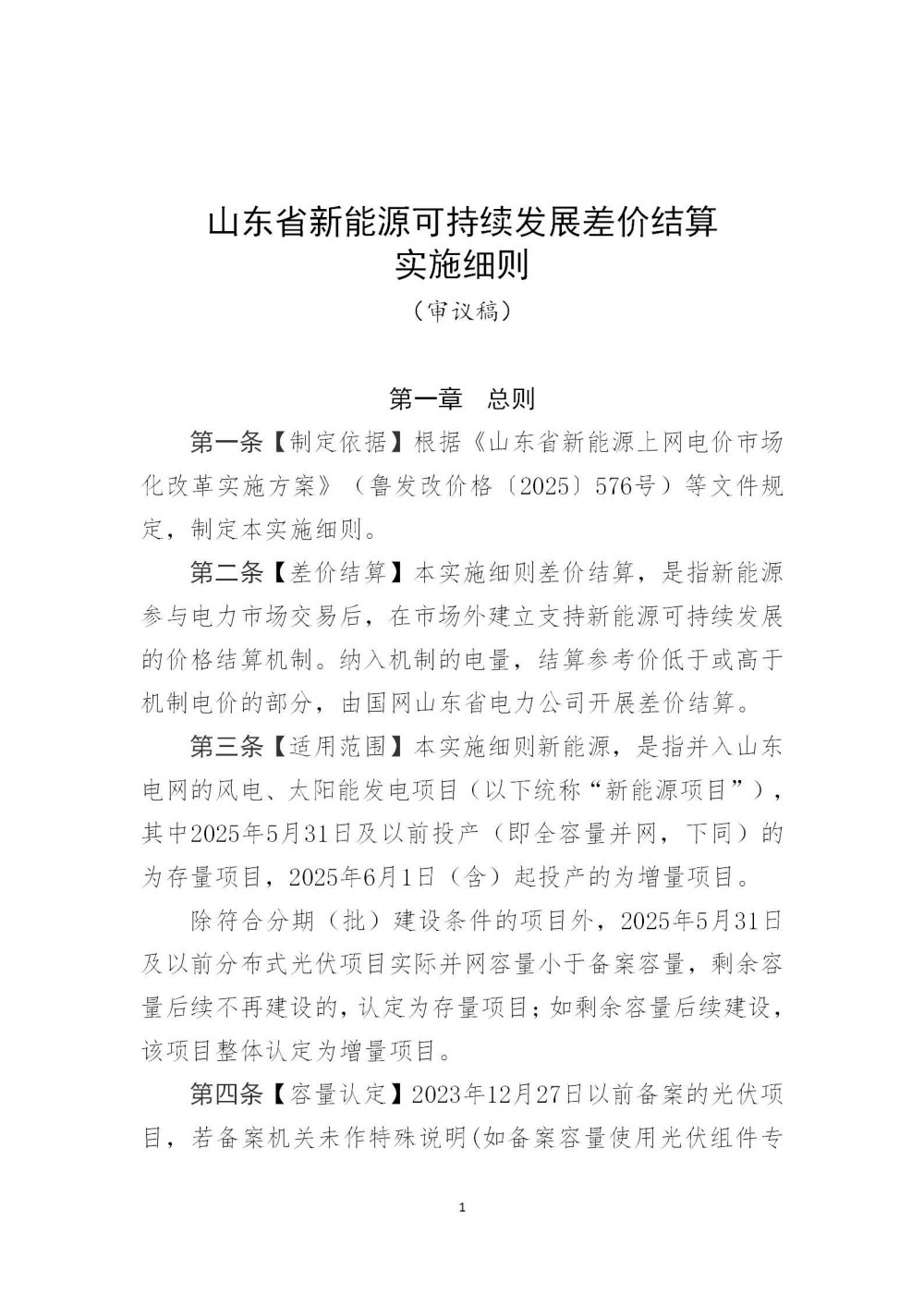 附件1:山东省新能源可持续发展差价结算实施细则(征求意见稿).docx