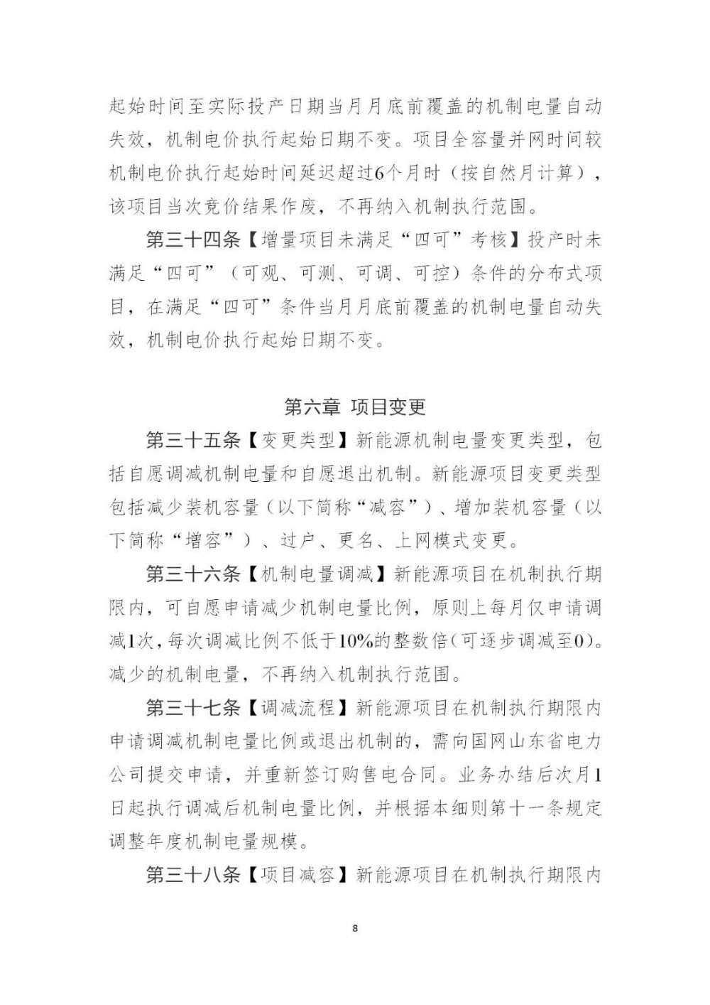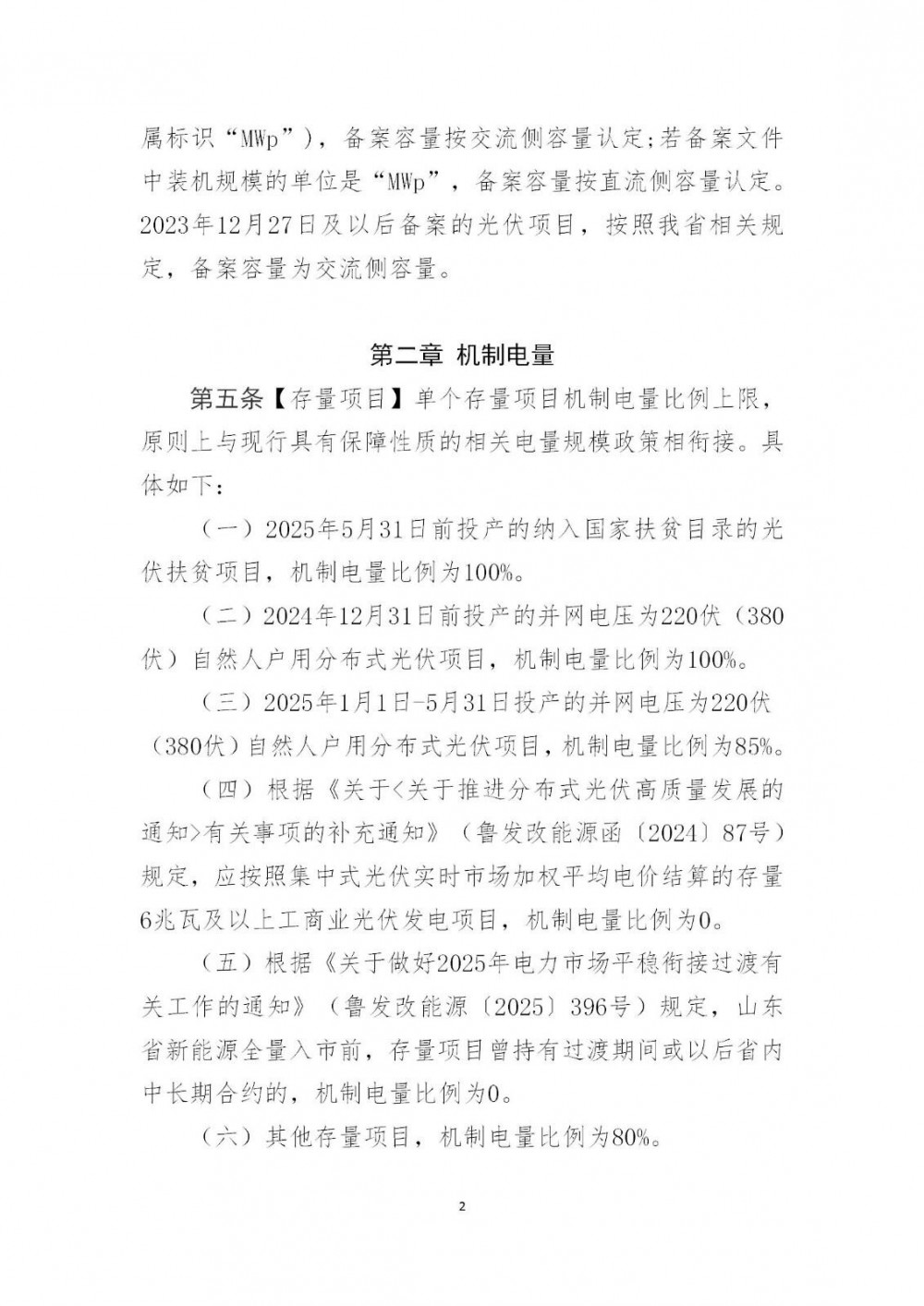 (四)根据《关于<关于推进分布式光伏高质量发展的通知>有关事项的补充通知》(鲁发改能源函〔2024〕87号)规定,应按照集中式光伏实时市场加权平均电价结算的存量6兆瓦及以上工商业光伏发电项目,机制电量比例为0。