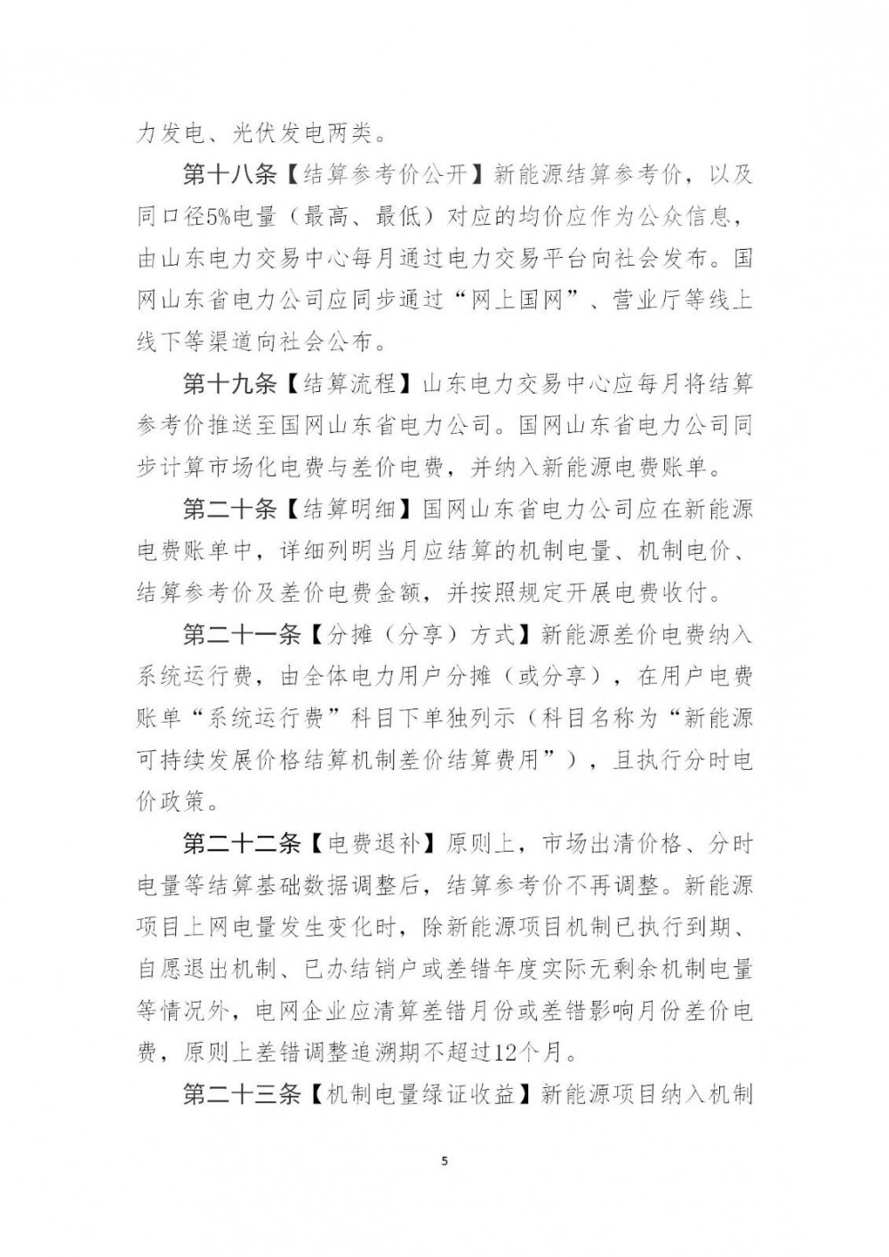 根据《山东省新能源可持续发展差价结算实施细则(征求意见稿)》: