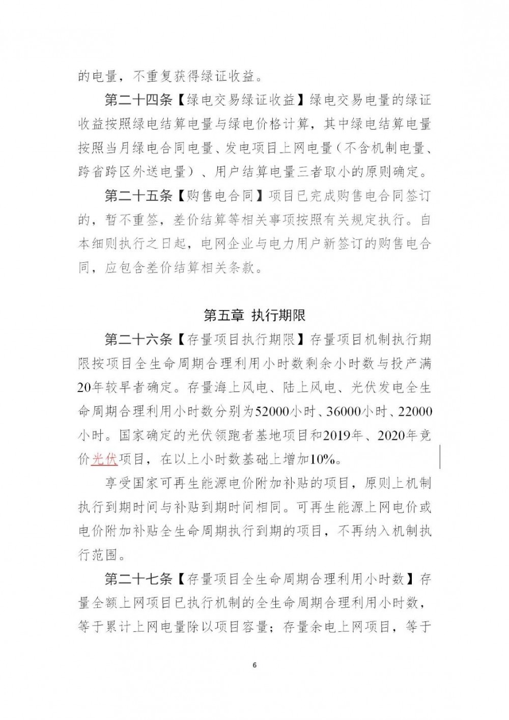 存量海上风电、陆上风电、光伏发电全生命周期合理利用小时数分别为52000小时、36000小时、22000小时。国家确定的光伏领跑者基地项目和2019年、2020年竞价光伏项目,在以上小时数基础上增加10%。