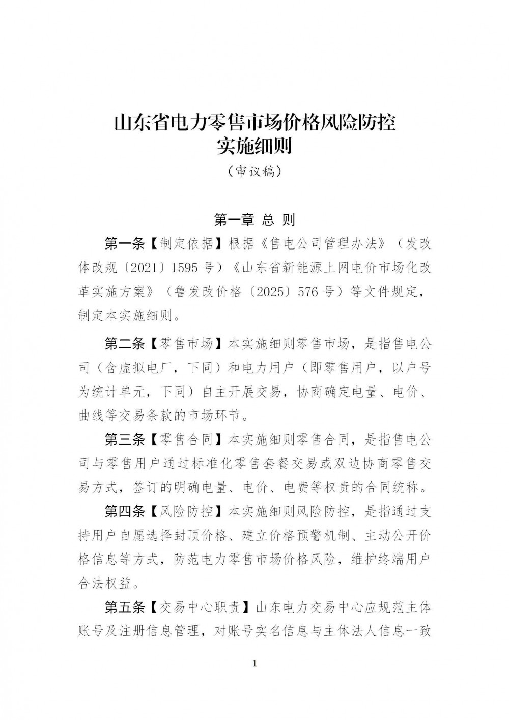 附件2:山东省电力零售市场价格风险防控实施细则(征求意见稿).doc