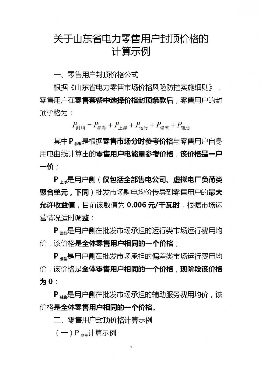关于山东省电力零售用户封顶价格的计算示例.docx