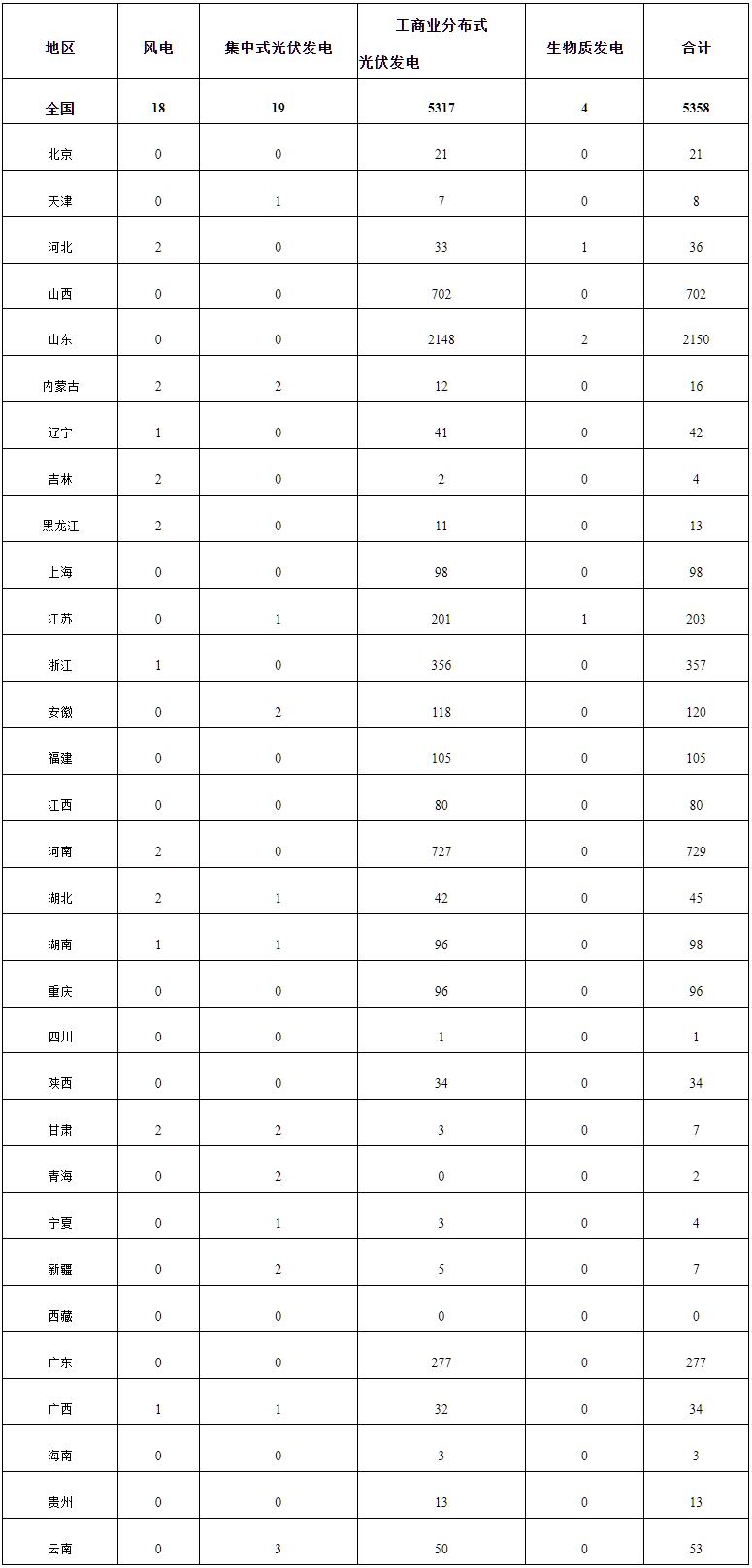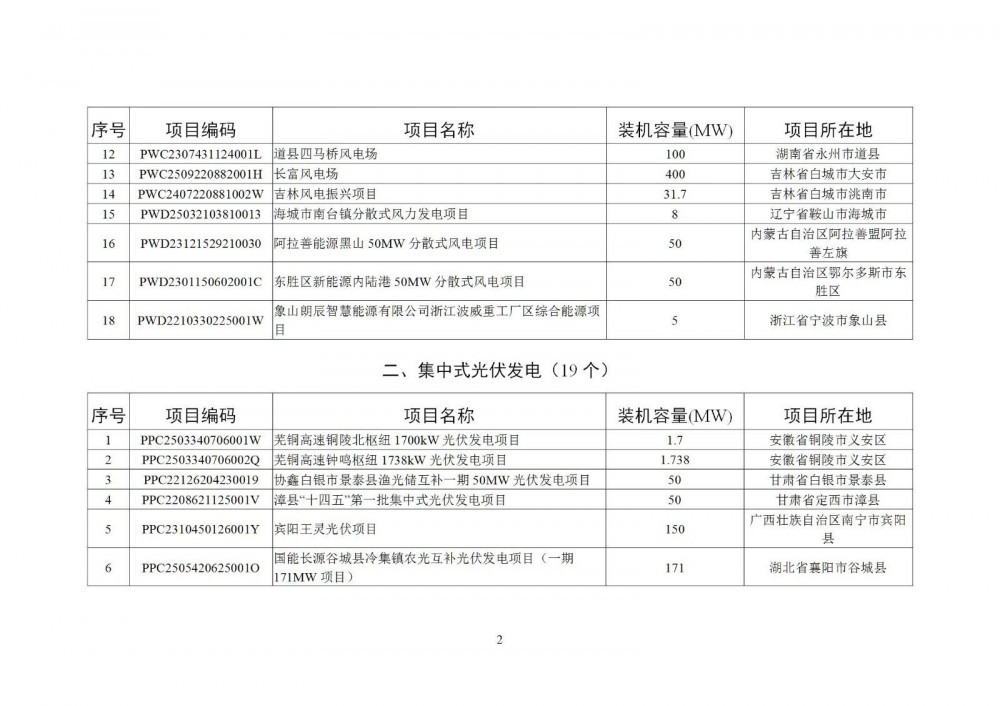 2025年10月,全国新增建档立卡新能源发电(不含户用光伏)项目共5358个,其中风电项目18个,光伏发电项目5336个(集中式光伏发电项目19个,工商业分布式光伏发电项目5317个),生物质发电项目4个。风电、集中式光伏发电、生物质发电项目清单见附件,工商业分布式光伏发电项目清单详见国家可再生能源发电项目信息管理平台网站(网址https://jdlk.renewable.org.cn/card-info-sheet/)。