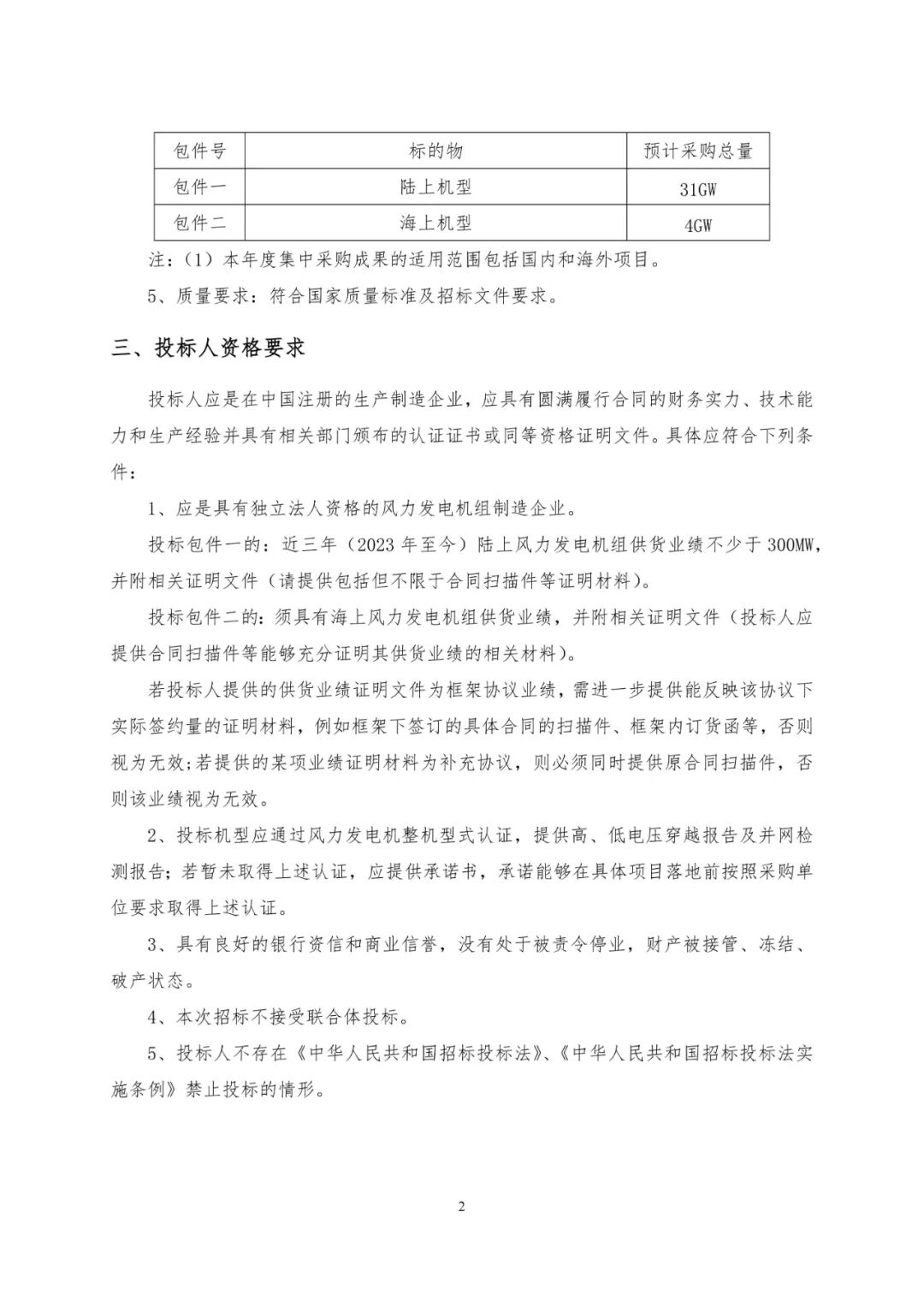 本次招标将按各包件分别确定集团公司2026年度风力发电机组入围供应商(入围供应商数量根据实际投标人数量确定),并签订框架协议,框架协议有效期至下一年度集中采购结果正式公布为止。