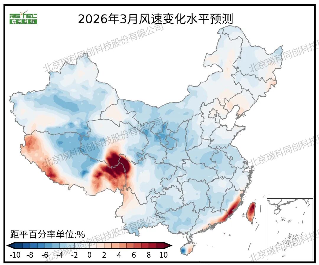 注:变化水平指风速预测结果较过去20年同期平均水平变化百分比