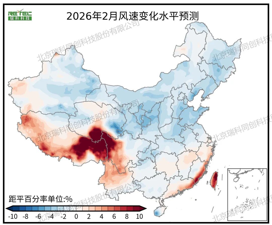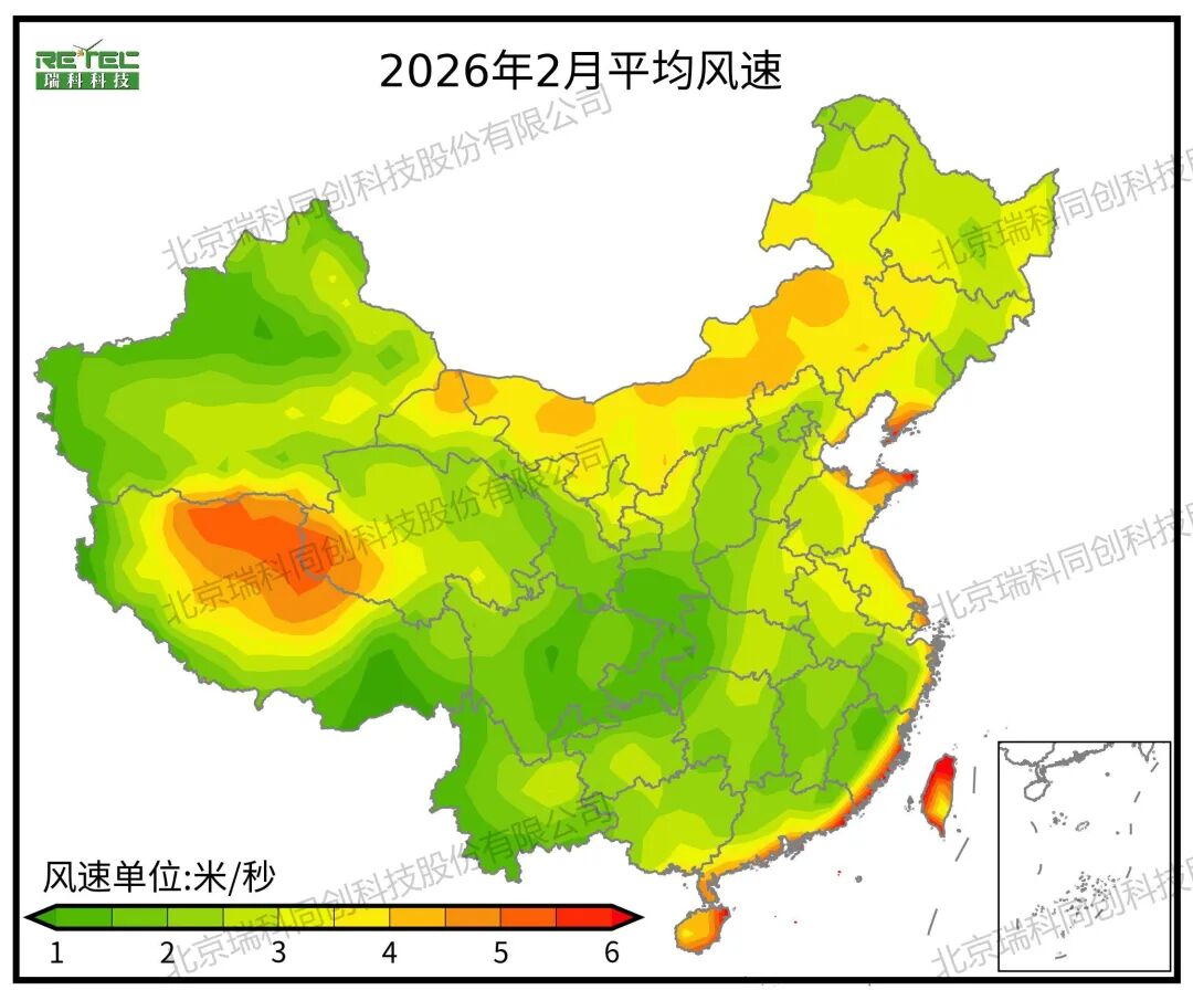 2026年2月,全国大部分地区风速较常年偏低,尤其是北方,如吉林、辽宁、山东、山西、甘肃等地,偏低2%~5%,风电出力受限,削弱了北方风电大发期对跨区外送的支撑作用;而福建、广东沿海地区及台湾省风速偏高2%~10%,海上风电高效运行,绿电供应能力增强。这一格局将促使东南沿海在跨省绿电交易中扮演更活跃角色,部分替代北方风电的外送功能,有助于缓解华中、华东地区冬季用电高峰期间的供需紧张局面,并对相关区域电价起到一定稳定甚至下行引导作用。整体来看,电力资源呈现“北弱南强”的阶段性特征,对全国电力市场的调度灵活性和交易机制协同性提出更高要求。