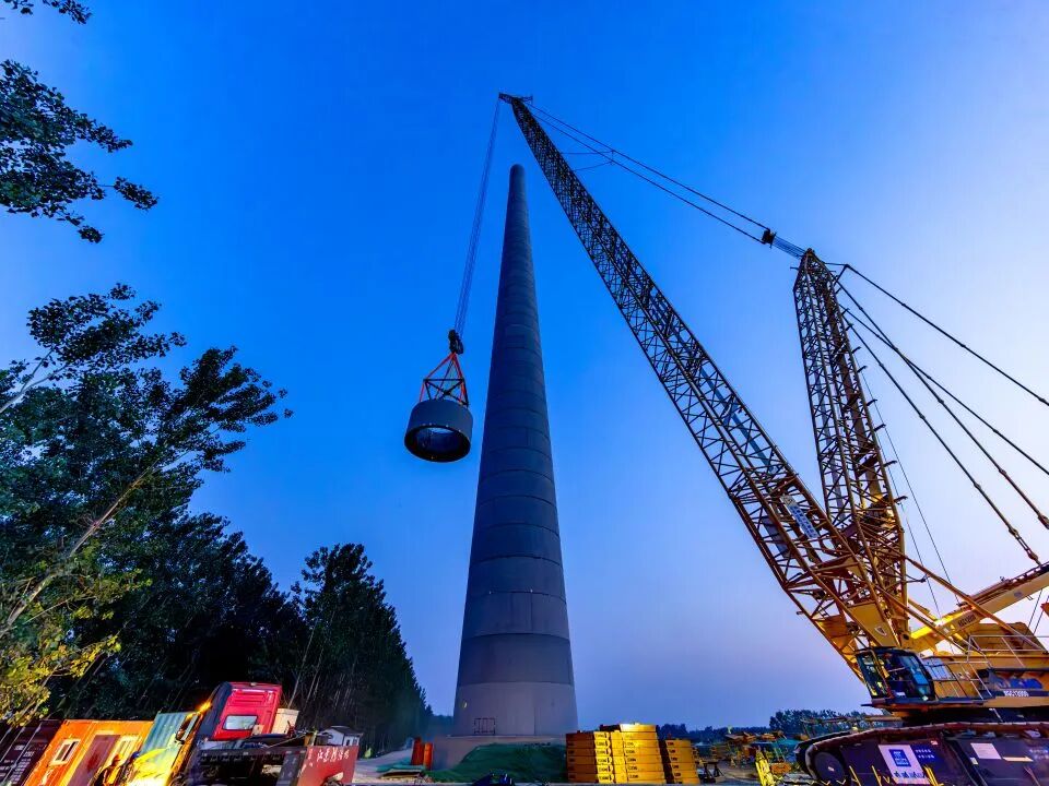 并于顶端固定重144吨的风机叶轮