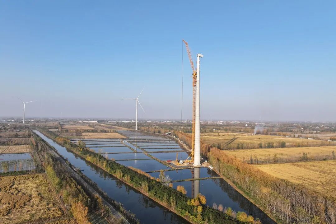 完成全部31台国内最高混塔风机吊装施工