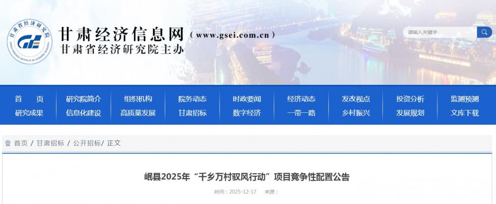 12月17日,甘肃岷县2025年“千乡万村驭风行动”项目竞争性配置公告发布。