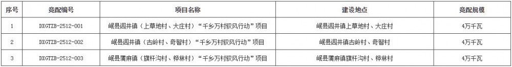 2.竞配规模:本次竞争性配置总规模12万千瓦,共3个风电项目(合计12万千瓦),标段项目竞配信息见下表: