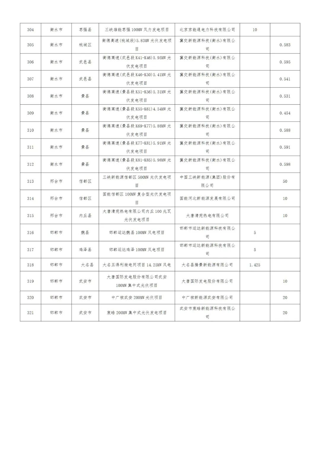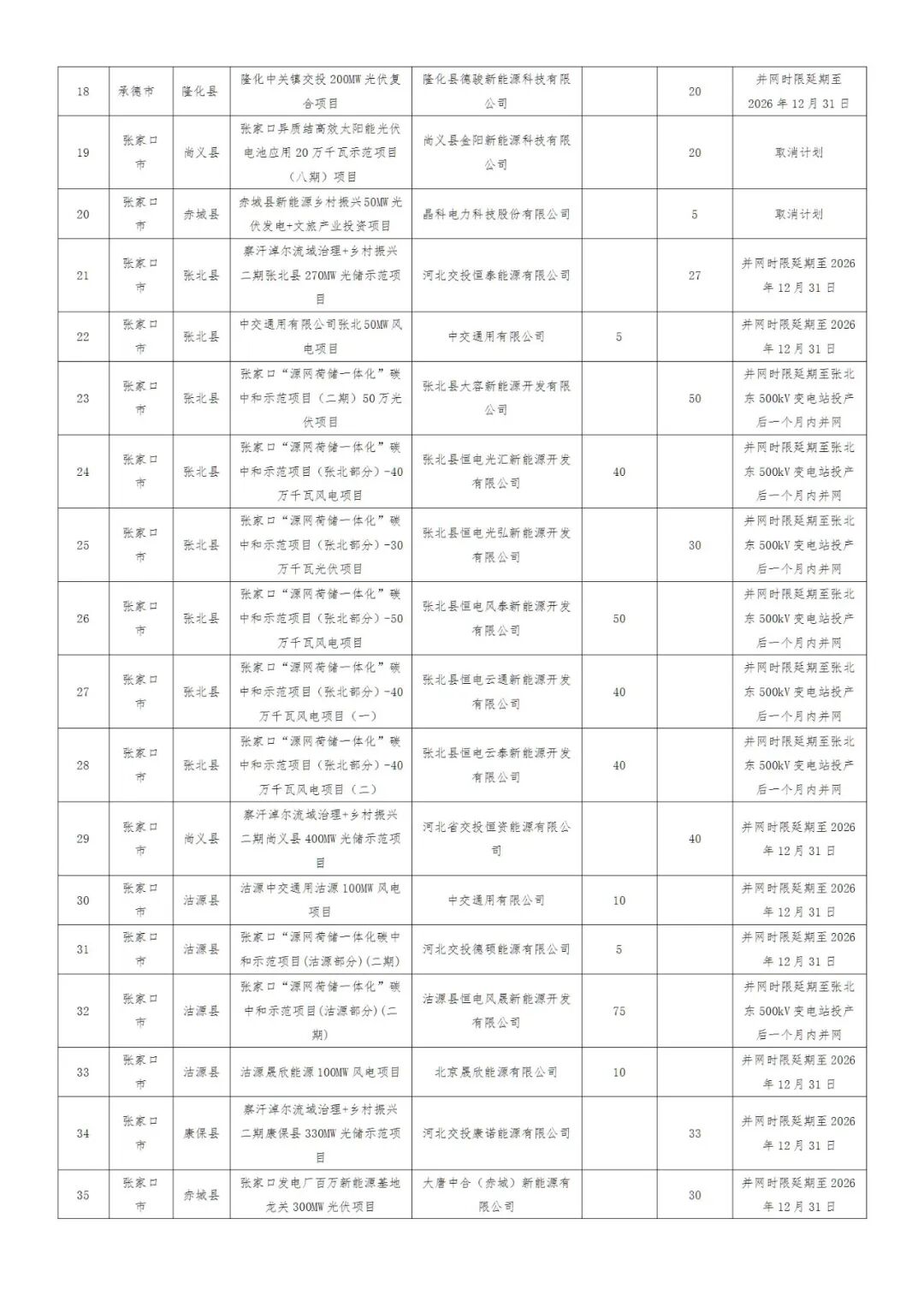 河北省2025年风电、光伏发电项目拟调整情况公示