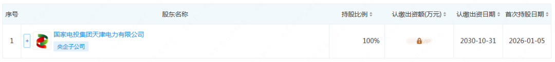股权穿透图显示,该公司由国家电投集团天津电力有限公司全资控股。