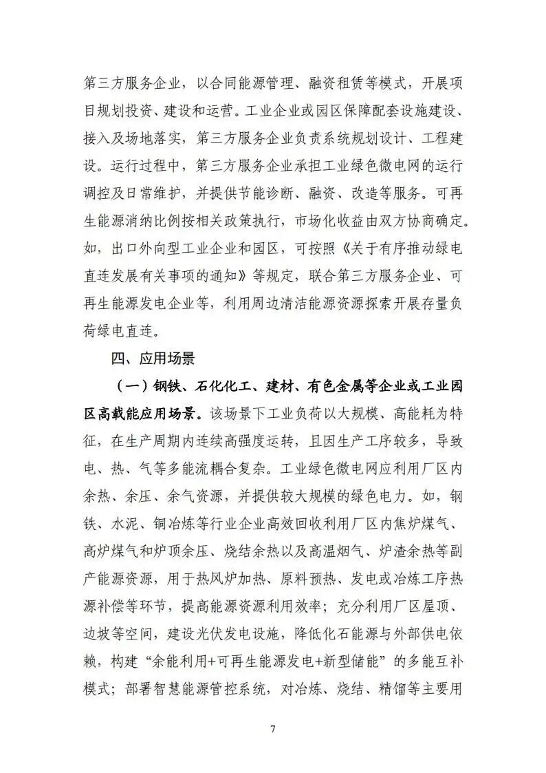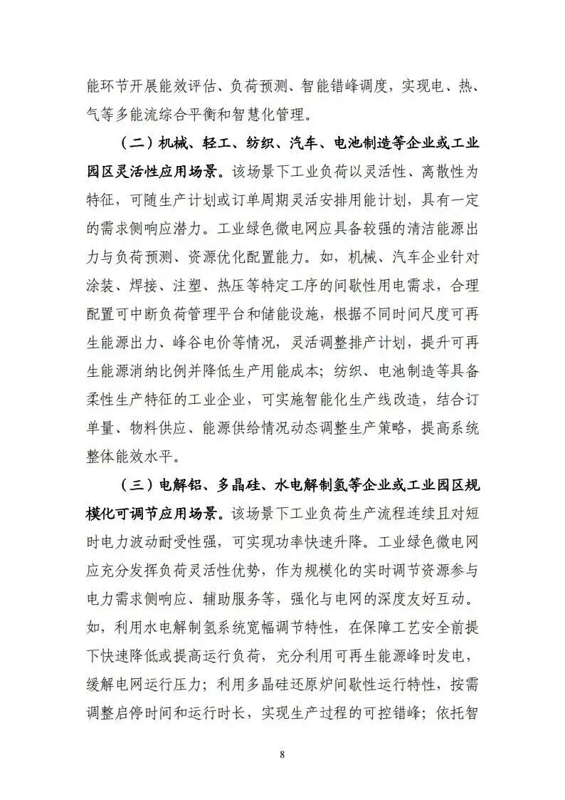 文件指出,工业绿色微电网是以向工业用户提供绿色电力为主要目的,集成应用光伏、风电、高效热泵、新型储能、氢能、余热余压余气、智慧能源管控等一体化系统,可融合工业生产过程、与电网友好互动并实现协同自治的综合能源系统。