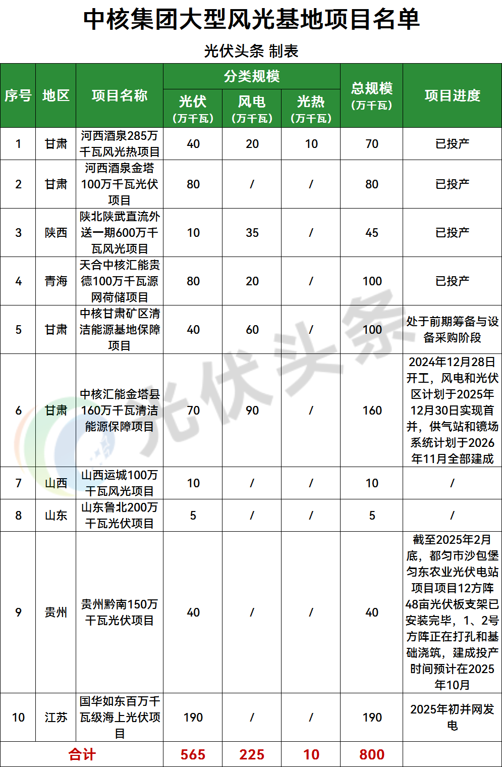 光伏头条统计,中核集团大基地项目位于甘肃、陕西、青海、山西、山东、贵州、江苏等省份。其中4.85GW项目已经建成投产,中核甘肃矿区清洁能源基地保障项目处于前期筹备阶段,其余项目则在建设之中。