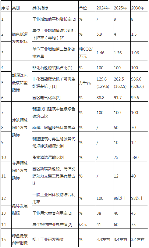 以再生纺织品产业为重点的碳循环典范园区。依托全国最大的再生棉回收和加工基地的优势条件,推动园区再生纺织品产业做优做强,推进纺织品产品碳足迹标识认证国家试点,最大限度推进产业废弃物资源化利用,大幅提升园区资源产出率,打造形成以废纺再生为主线、协同推进各类废弃物循环利用的碳循环典范园区。以制度集成改革为核心的碳管理样板园区。依托园区高比例电气化水平优势,聚焦碳要素管理,集成园区各类碳排放数据,建设园区碳管理平台,实现对园区碳排放的实时监测和动态管理;探索实施项目建设和企业运营碳评价机制,建立园区碳预算和企业碳核算预算管理制度,打造形成全过程、全领域精准控碳的碳管理样板园区。